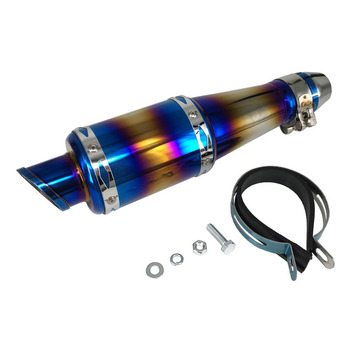 ท่อไอเสียรถจักรยานยนต์ดัดแปลงพิเศษทรงกระบอกตรงผ่านทางถนนท่อไอเสียสแตนเลสสีสันสดใส